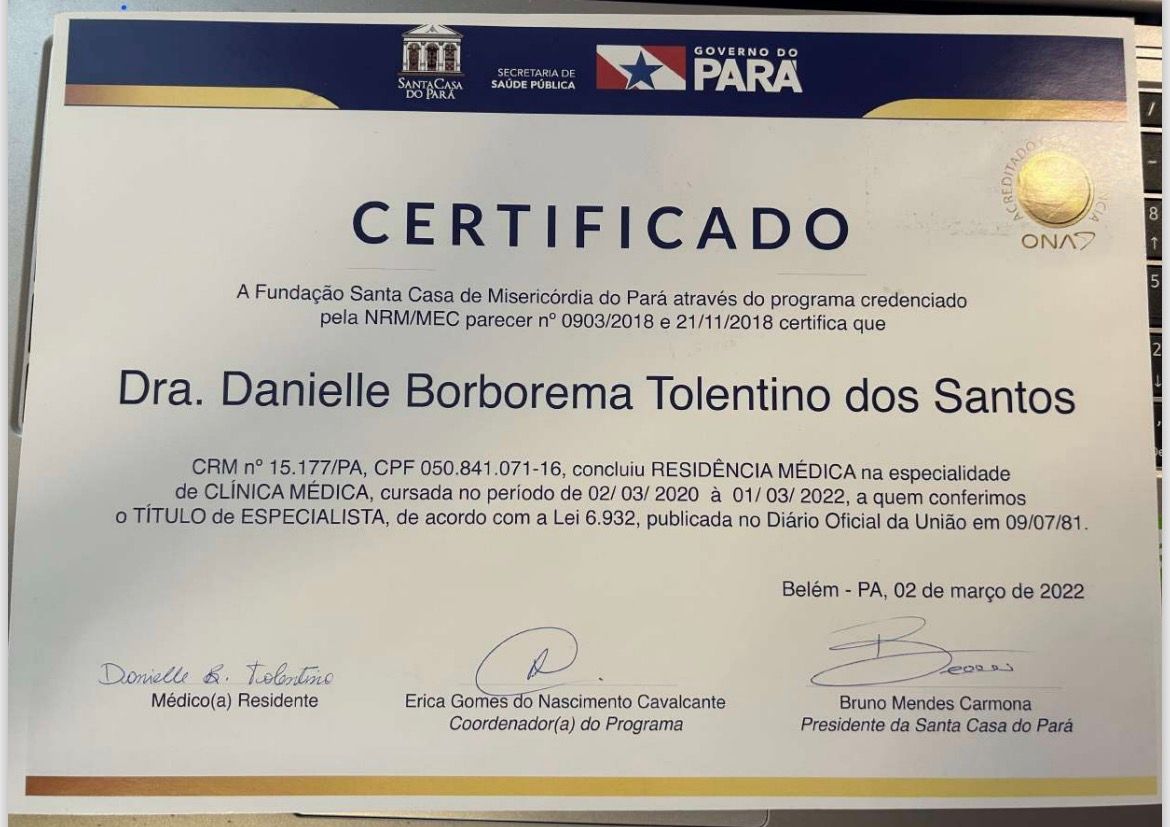 Clínica médica pela Santa Casa de Misericórdia do Pará